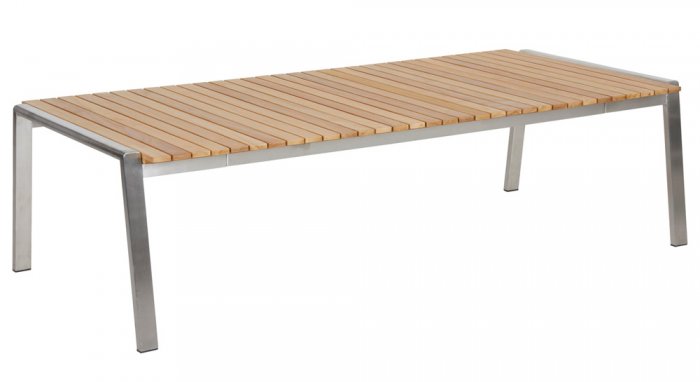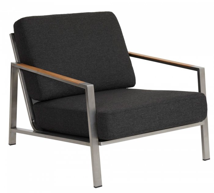 Naos är en loungegrupp med rena linjer och tidlös design i en modern tappning. Den låga sitthöjden förstärker känslan av modern loungestil. Blandningen av material är spännande, rostfritt stål och teakdetaljer på armstöden och bordsskivan. Riktigt sköna dynor av högdensitetsskum med klädsel av fodrat olefintyg som gör dem vattenavvisande. Det här är en sittgrupp med snygga detaljer och vinklar för dem som älskar kombinationen av rostfritt stål och teak.