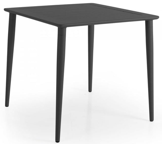 Nimes är ett elegant matbord i antracitgrå pulverlackad aluminium från Brafab. Nimes har en elegant ribbad toppskiva med nätta och snygga konade ben. Bordet är helt underhållsfritt och kan stå ute hela sommarsäsongen. Skydda gärna under vinter.