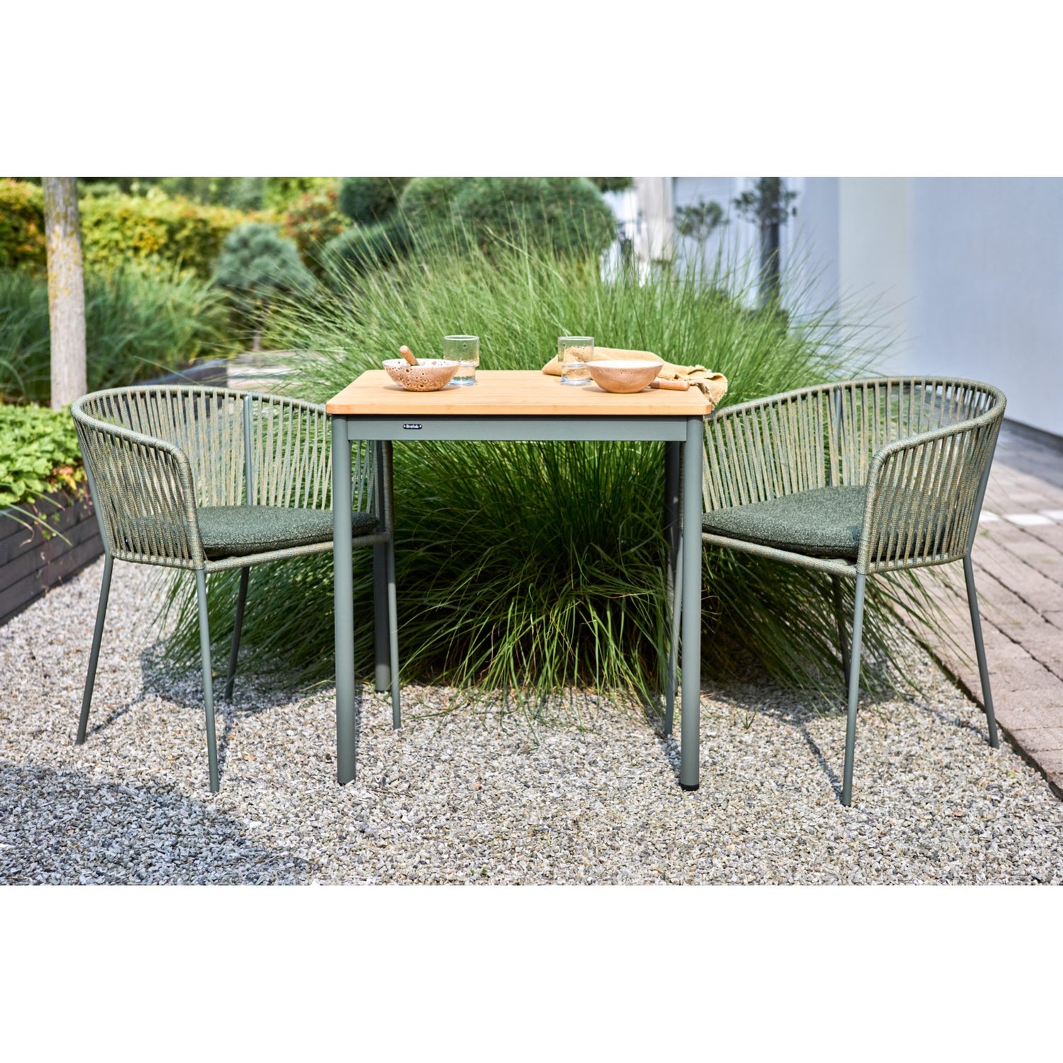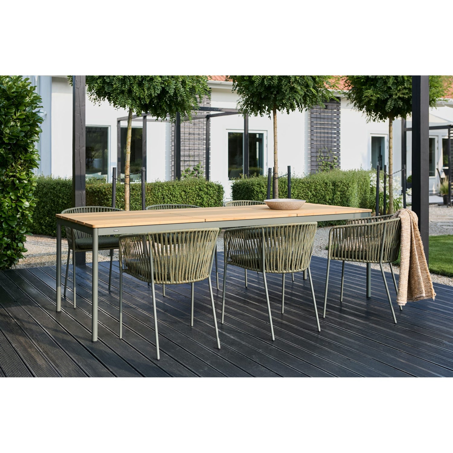 Piatto, matstolen som kombinerar komfort och hållbarhet med sin robusta stålram, designad för utomhusbruk samtidigt som den är vacker och stilren. Sits och rygg är gjord av breda, vävda rep som ger skönt stöd och tillför en touch av hantverksmässig elegans till din utemiljö. Dyna ingår för extra komfort.