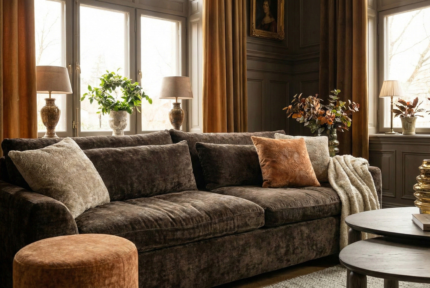 Arthur 3,5-sits är en modern och bekväm loungesoffa som bjuder in med sitt generösa sittdjup. I detta utförande är den klädd i det mjuka chenilletyget Glory i färgen Bruise, ett Öko-Tex-certifierat tyg som är skönt att sitta i och har en slitstyrka på 40 000 Martindale. De stora svankkuddarna ingår och ger behagligt stöd för svank och rygg, samtidigt som soffans bärande delar i stommen är i massivt trä för en stabil och gedigen känsla. De mörka träbenen ramar in helheten och ger ett elegant uttryck som passar lika bra i vardagsrummet som i hemmets loungehörna.