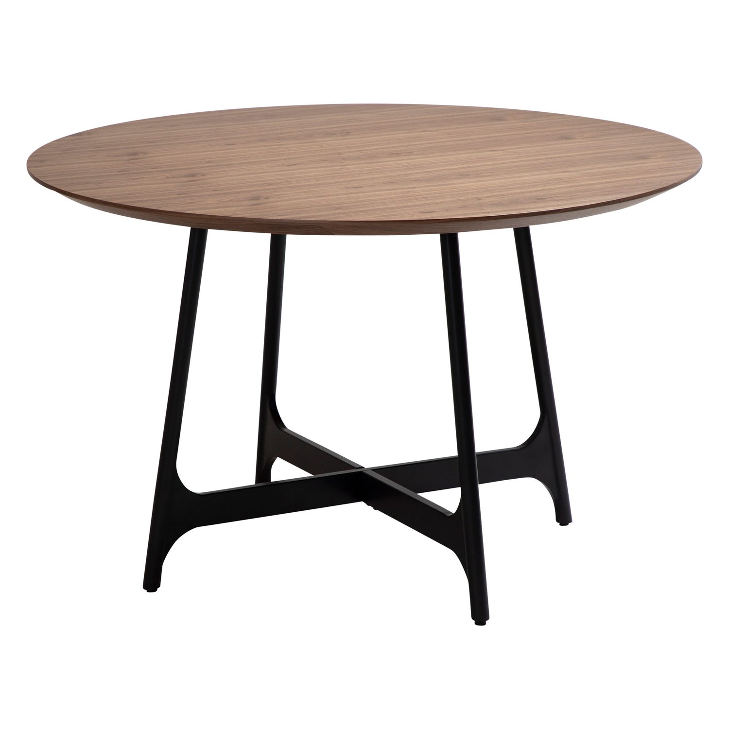Det runda OOID-bordet är elegant och stiligt. Bordsskivan uppfattas som lätt tack vare den fasade kanten, och metallbenen som korsar under bordet har rundade detaljer för ett mjukare utseende. Välj mellan flera olika material och färg på både bordskivan och benen. Bordsskivan har en fanér med ett naturligt utseende som också har en ett tunt lager mattlack applicerat för att göra bordet mer tåligt och lättskött.