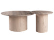 Bordet finns i två storlekar och kan användas separat eller i kombination som satsbord. Tillsammans skapar de en dynamisk möbelgrupp där det mindre bordet enkelt kan skjutas in under det större för ett levande uttryck och extra flexibilitet.