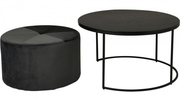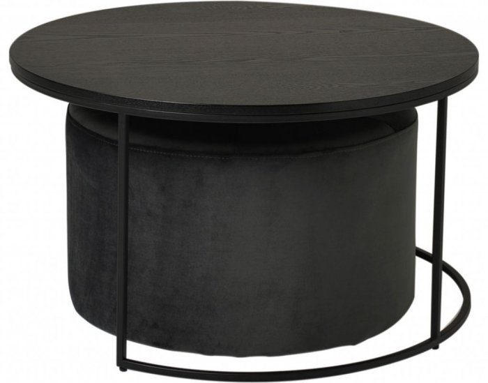 Det som skiljer Pisa från liknande bord är att istället för ett till litet bord under det stor ingår en nätt sittpuff klädd i svart velour (sammet). Pisa erbjuder en perfekt lösning för dig som inte har plats med en puff hela tiden.