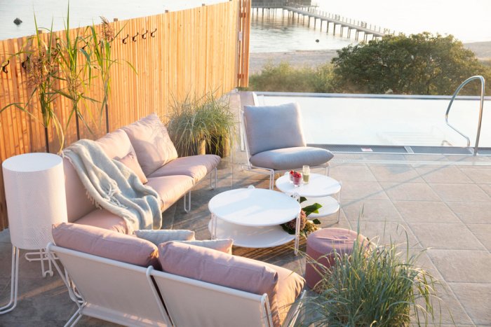 Soffborden i Blixt serien har en snygg perforerad yta som både är en snygg detalj men som också gör att vattnet enkelt kan rinna igenom. Bordet är helt tillverkad i aluminium så är underhållsfritt. Se samtliga produkter i Blixt-kollektionen här!