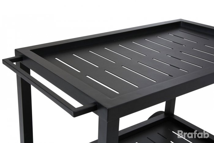 Belfort är en modern och stilren serveringsvagn i svartlackad aluminium från Brafab. Stommen är pulverlackad för att ge vagnen en slitstark och snygg finish. Belfort är ett perfekt litet avställningsbord för drinkar och grilltillbehör under sommaren som då även förflyttas enkelt tack vare dess hjul. En smidig hylla finns undertill. Stommen är helt underhållsfri och kan stå ute under hela sommarsäsongen. Belfort serien finns både med svart eller vit stomme.