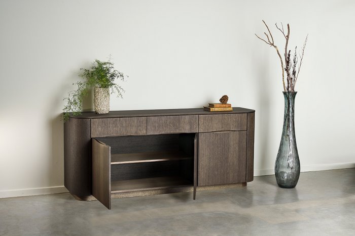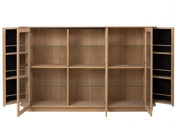 En av de unika egenskaperna hos Collum-möblerna är det praktiska dryckes- och förvaringsfacket på båda sidor av skåpen. Med böjda trädörrar, försedda med magnetspärr, har du en enkel åtkomst till allt du behöver för att göra ditt hem organiserat och snyggt.