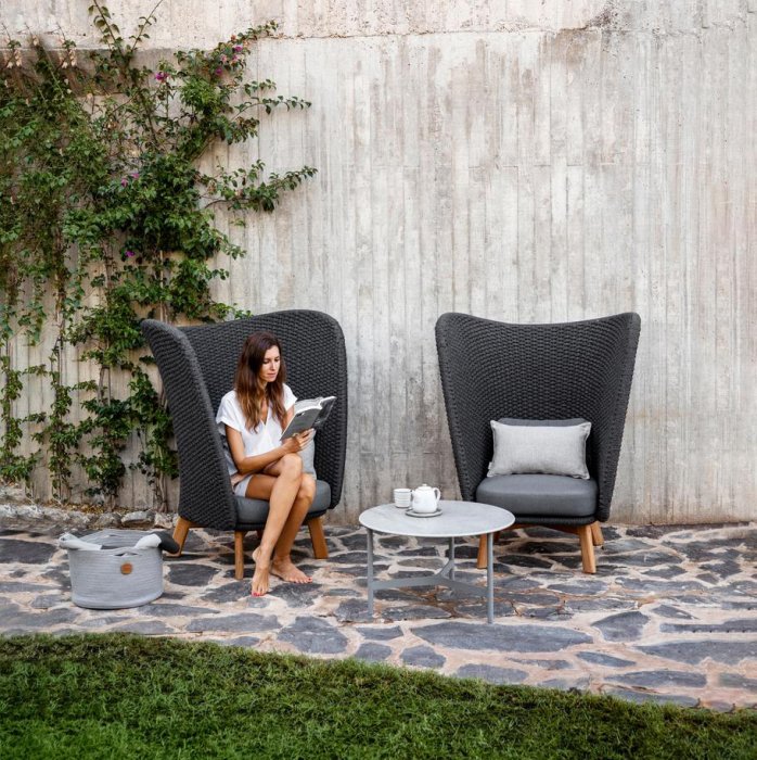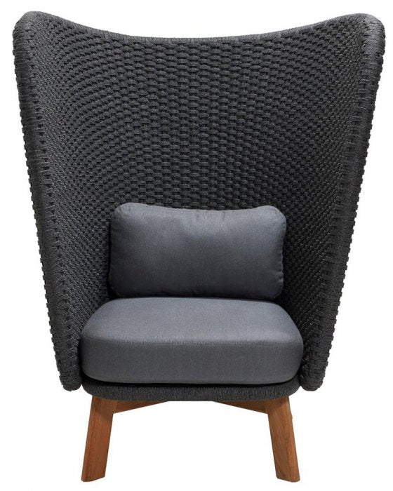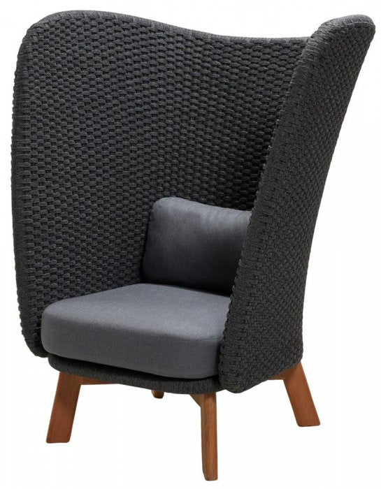 Peacock Wing är en modern och cool loungefåtölj från danska Cane-Line. Stommen är tillverkad i slistark och härdat konstrotting med en stomme i aluminium. Peacock är godkänd för offentlig miljö. Likt namnet är designen inspirerad av påfågeln. Wing modellen har en hög rygg som ger en mysig omfamnande känsla. Dynan är tillverkad i Sunbrella tyg som helt vattentät.