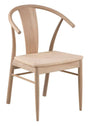 Den böjda och dekorativa ryggstödet tillsammans med den flätade sitsen skapar en minimalistisk matstol som pryder både moderna och traditionella matsalar. Den har en vitpigmenterad oljad ekram som paras ihop med papperssnöret i off-white färg för att skapa en harmonisk atmosfär.