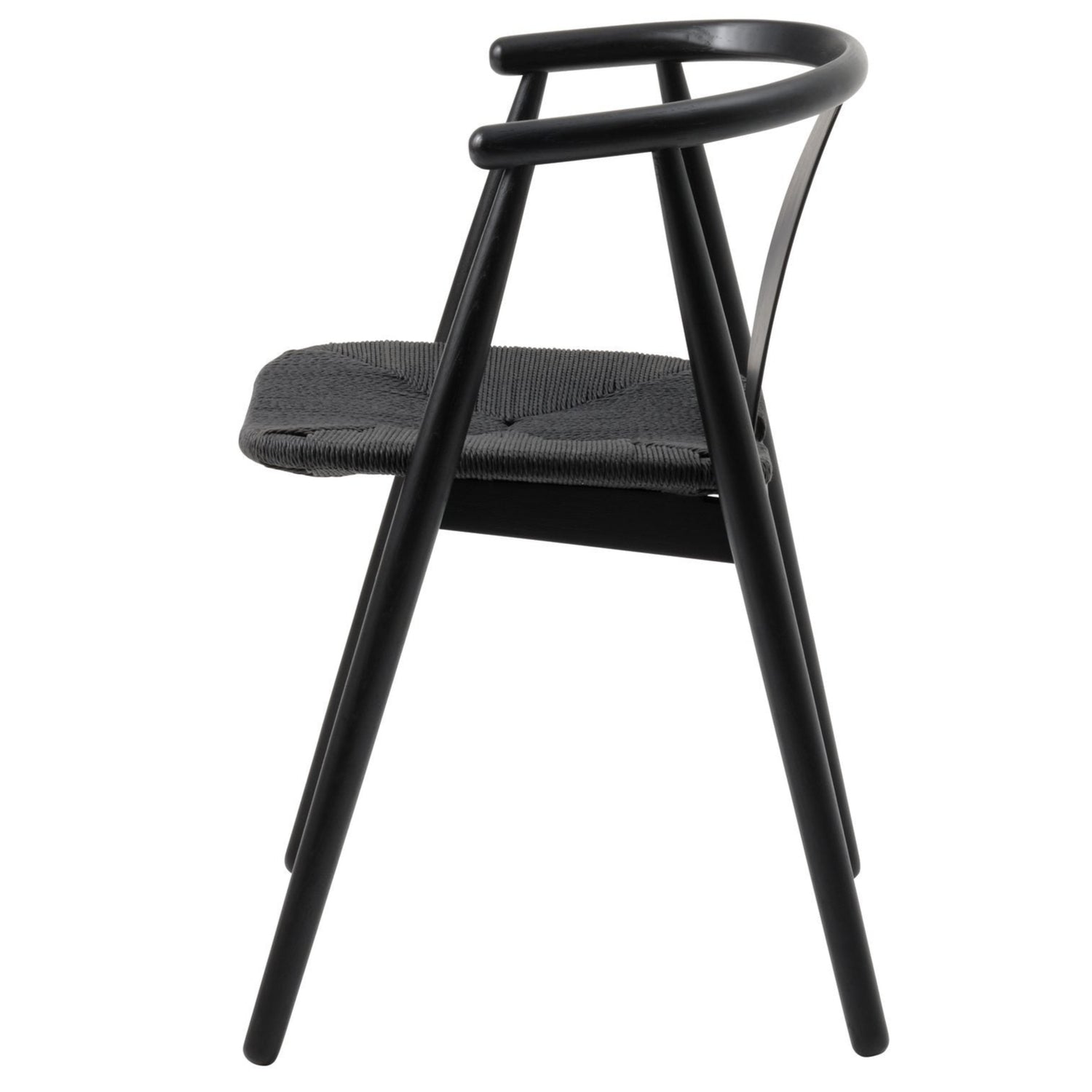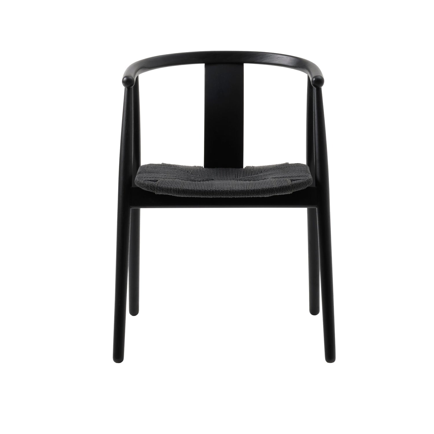 Gable i svart trä blir ett grafiskt statement runt bordet. Den rundade ryggen och armstödet ger skönt stöd, medan den monokroma finishen skapar ett stilrent, sammanhållet uttryck. Nätt, luftig och lätt att möblera med – perfekt i moderna interiörer. Finns även i Black/Latte, Naturlig, Naturlig/Latte och Rökt ek/Latte.