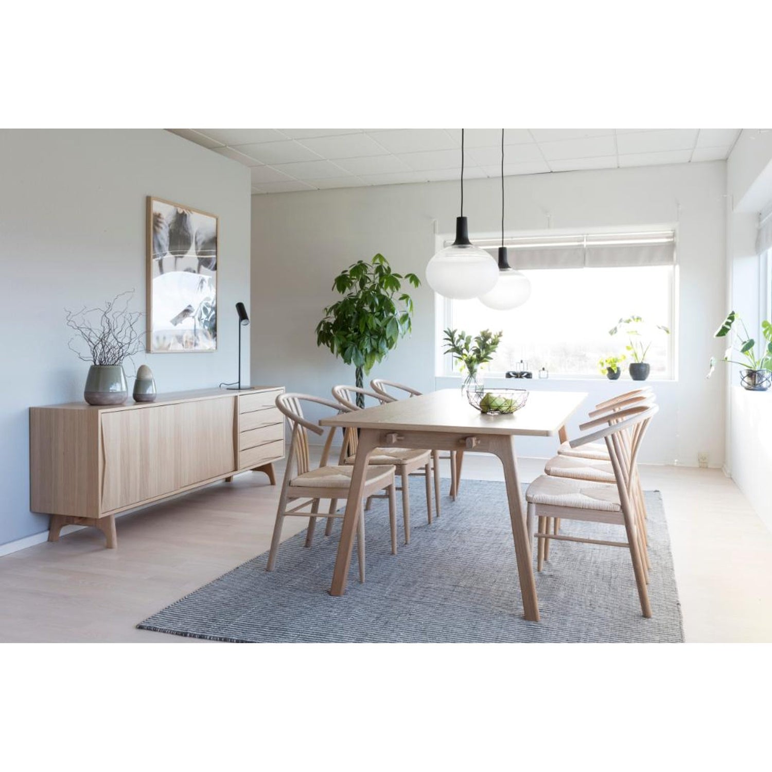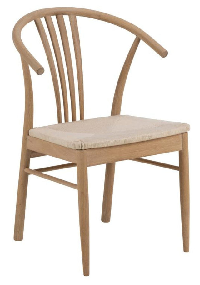 Denna matstol från är designad med en mjuk skandinavisk estetik, vilket gör att den passar väl in i många hem. Stolens ram är tillverkad av ek som är behandlad med vitpigmenterad olja.