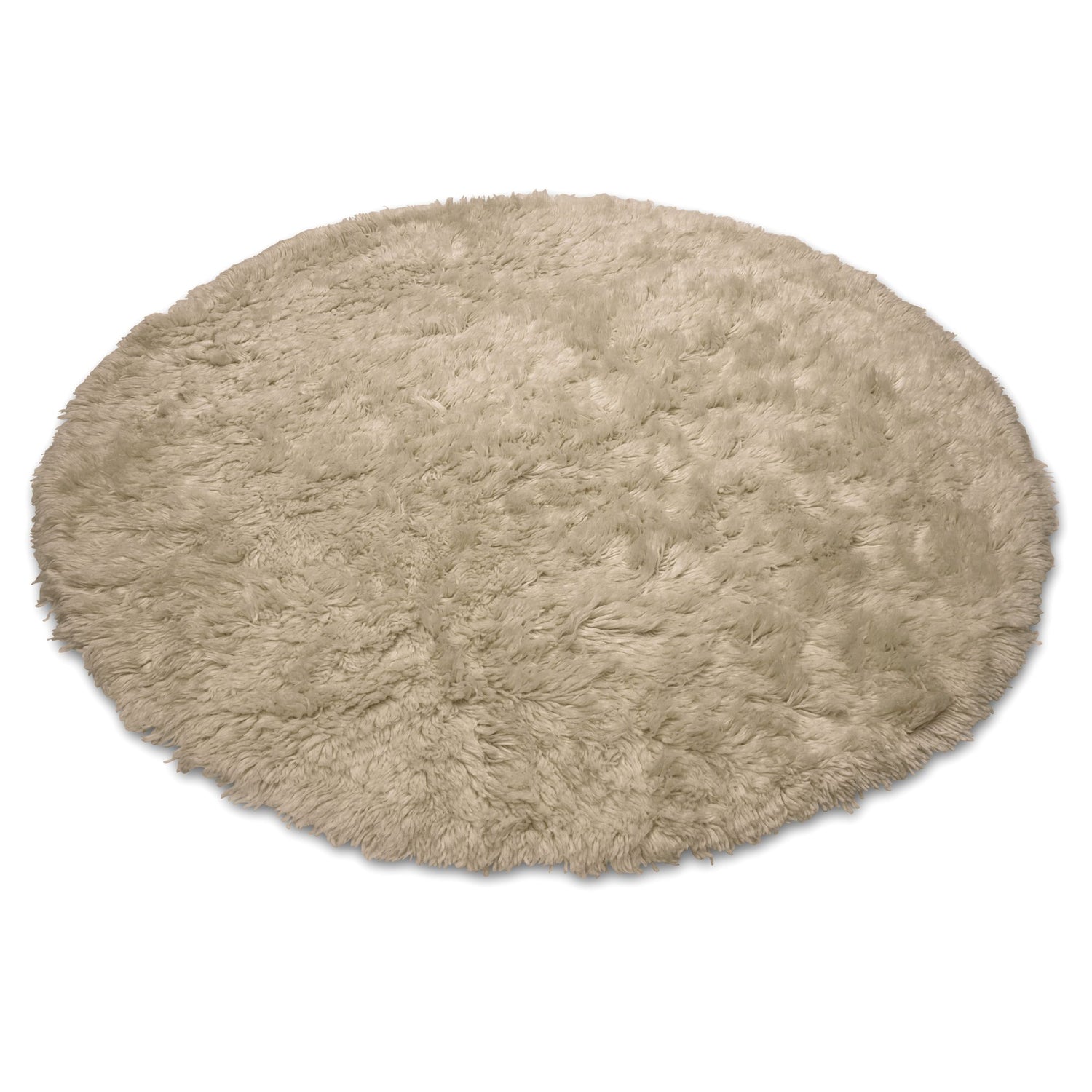 Matta Cloudy Beige rund är vävd i ull och finns i flera färger. Mattan är fluffig och påminner om den traditionella Grekiska Flokatin.
