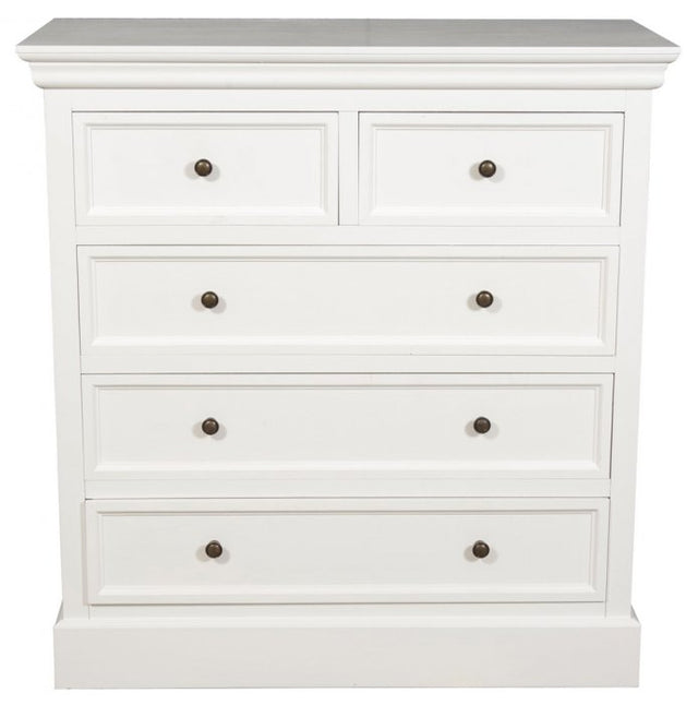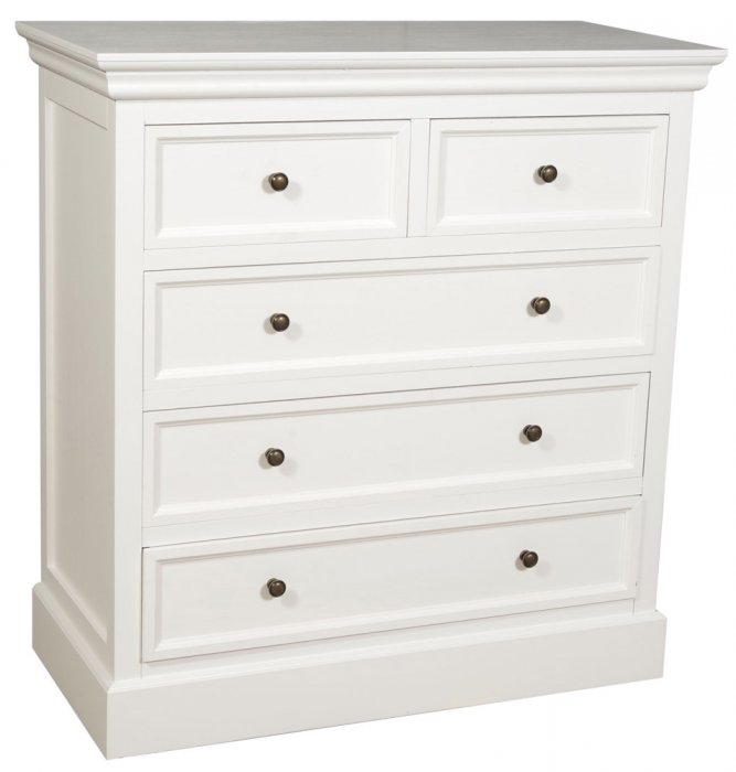 Bristol är ett klassiskt byrå/skänk från Nordic Furniture Group. Stommen är tillverkad i matt vit antikbetsat trä med vintagefinish. Bristol kommer helt färdigmonterad. Byrån kommer med två mindre lådor överst samt tre större för praktiskt förvaring. Bristol är en stor förvaringsserie med många fina möbler.
