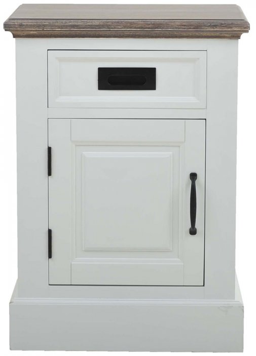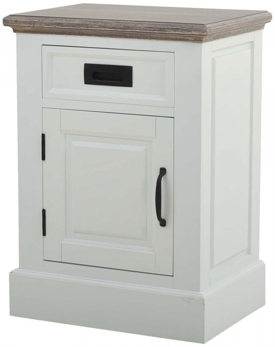 Knight är ett elegant och klassiskt sängbord från Nordic Furniture Group. Knight har en klassisk design som ger en gedigen känsla. Stommen är tillverkad i vitlackad mdf med snygga beslag i svart metall. Toppskiva i grå rustik träfinish. Knight har dörr och en låda som ger en mycket bra förvaring.