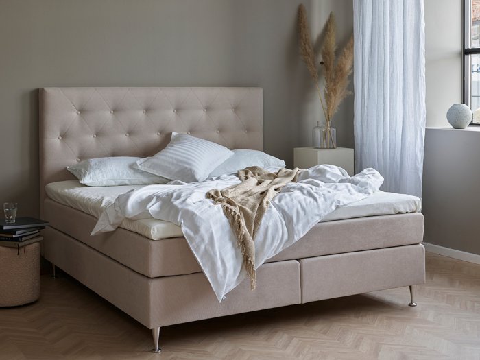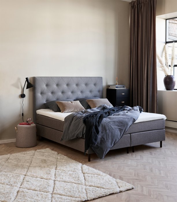 Gimle är en elegant huvudgavel från Folkhemmet som passar utmärkt till Gimle kontinentalsäng eller annan säng från vår kollektion. Gaveln har en diskret pickering som ger ett exklusivt intryck. Välj mellan flera olika storlekar och tyger. Två svarta ben medföljer.