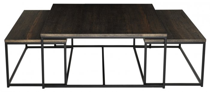 Natalie är ett elegant och modernt satsbord från Nordic Furniture Group. Soffborden har snygga toppskivor i mörkbrun ekfanér och underreden tillverkade i svartlackad metall.