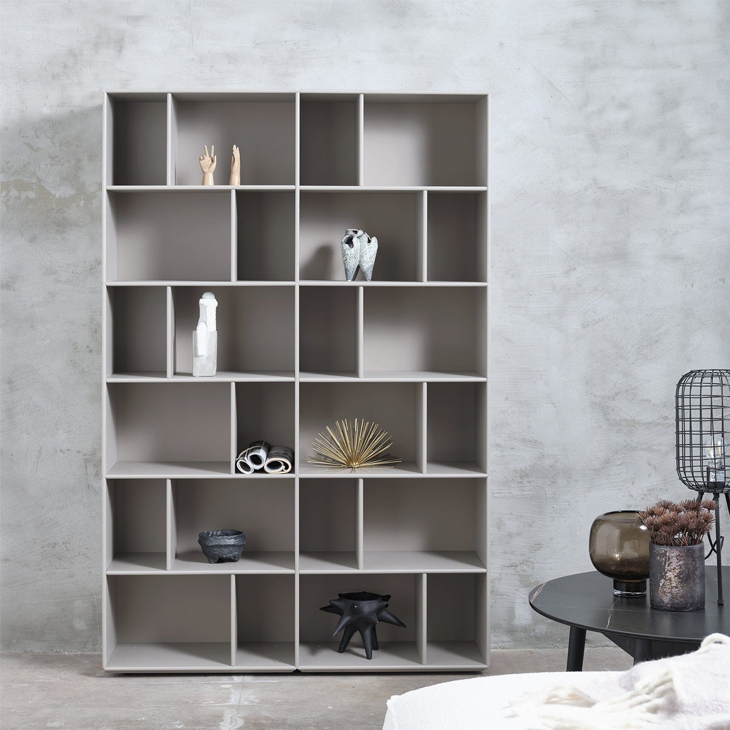 Quadrant-hyllan Brooklyn är en modern och uttrycksfull vägghylla som ger rummet både personlighet och elegans. Med sin generösa storlek på 117 cm i bredd och 177 cm i höjd blir den ett tydligt blickfång som samtidigt erbjuder gott om plats för böcker, prydnadssaker och personliga minnen.