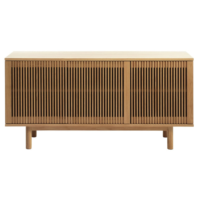 Lido sideboard förenar varm ekton med ren skandinavisk form. De två skjutdörrarna med elegant lamellfront i ekfaner döljer generös förvaring och ger samtidigt ett lätt och stilrent uttryck. Invändigt finns gott om plats för porslin, glas och vardagsprylar, medan den slanka siluetten gör möbeln enkel att placera i både hall, matrum och vardagsrum. Den naturliga finishen i ekfaner skapar en tidlös, enhetlig helhet.