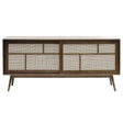 Denna skänk är gjord av hållbar rökt ek och har en skandinavisk design med rena linjer. Den erbjuder praktisk förvaring och ett enkelt utseende, vilket gör den lämplig för alla vardagsrum eller matplatser.