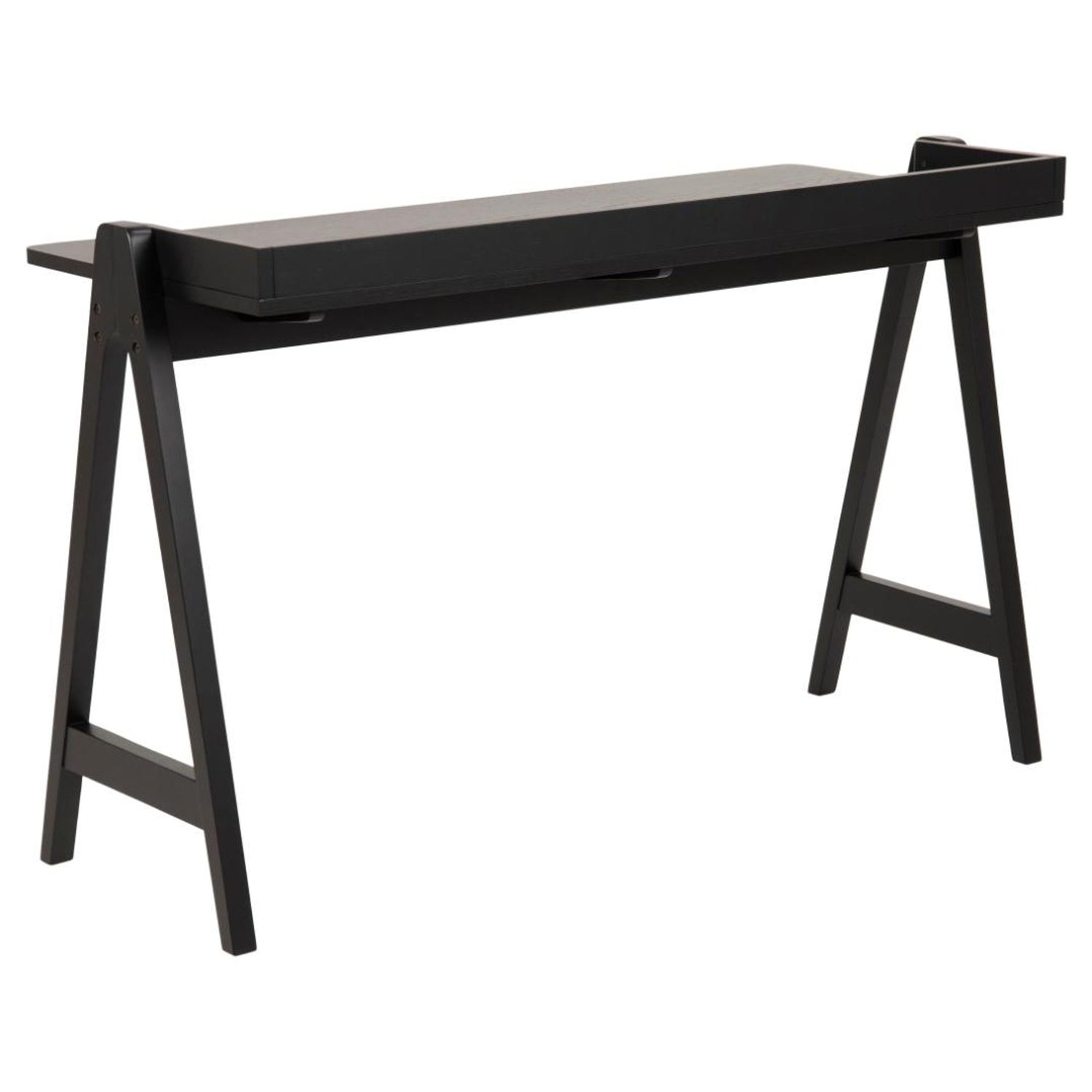 Detta skrivbord är designat för att inspirera kreativitet med sin svarta mattlackerade yta och bockben som ger en känsla av hantverk.