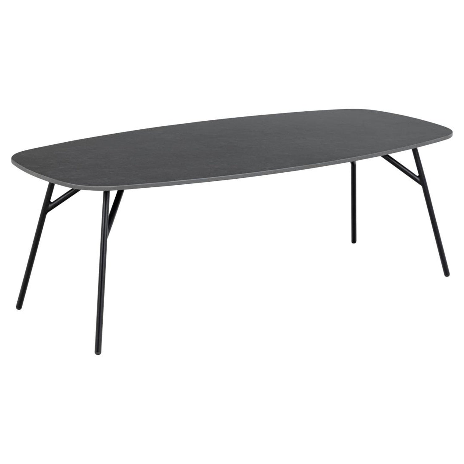 Soffbordet Bastille kombinerar naturliga och industriella element med en rundad rektangulär topp i svart keramik. Det är motståndskraftigt mot både värme och repor, vilket säkerställer en yta som kräver minimalt med underhåll.