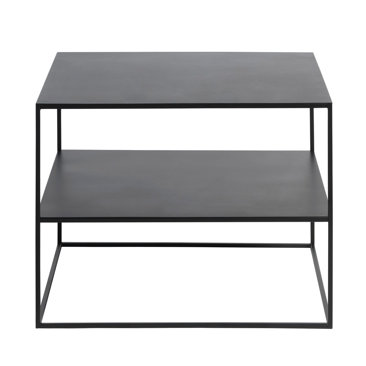 Legno är ett kvadratiskt soffbord i matt svart med ren, skandinavisk siluett. Den slanka metallramen ramar in två praktiska nivåer: en elegant topp för kaffe, böcker och dekorationer, samt en nedre hylla som håller fjärrkontroller, magasin och brickor nära till hands. Den luftiga designen gör bordet lätt att placera och lika snyggt solo som ihop med andra bord i Legno-serien.