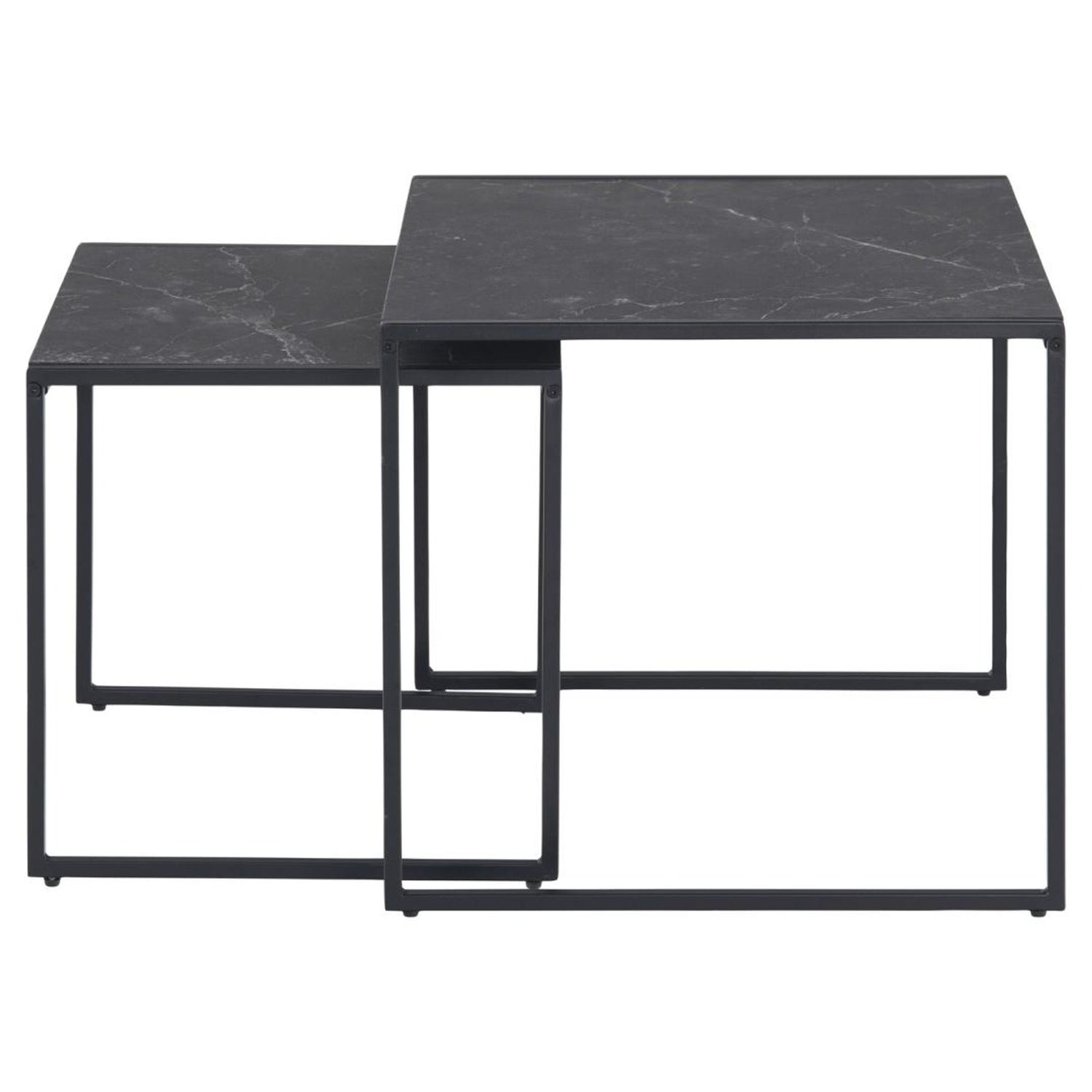 Få en inblick i industriell design med dessa satsbord. De rena linjerna, marmorlika utseendet och svart pulverlackerat metall gör att satsborden passar i nästan alla vardagsrumsmiljöer. Tillsätt värme med färska blommor, ett stearinljus eller din favoritdekoration.