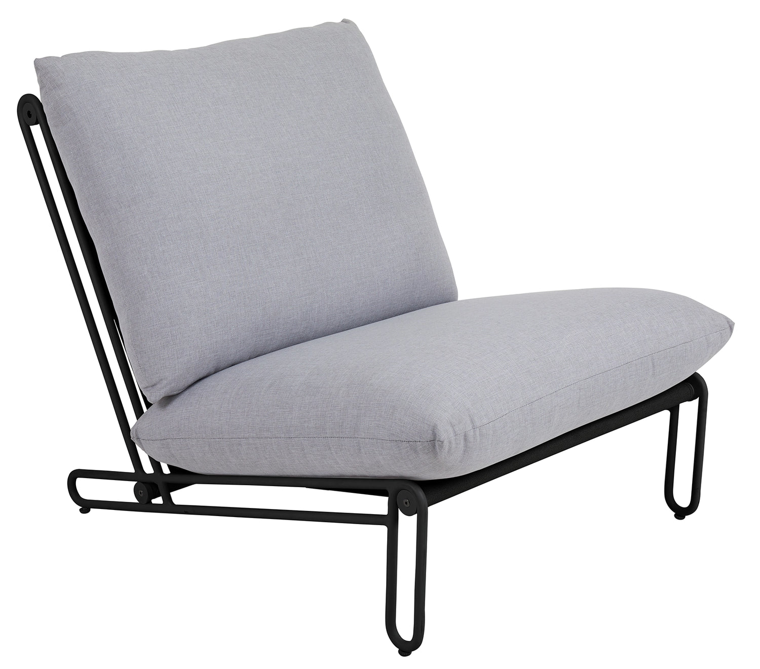 Blixt drar blickarna till sig, antingen som solitära fåtöljer eller som sammansatt soffa. Moderna vinklar och god komfort - passar in i flera olika utemiljöer. Stomme i aluminium (Light Grey och Svart) och vattentåliga dynor i olefintyg med TPU-liner. Dynorna finns i grön (Teddy Verde), grå (Sky Grey) och beige (Clay beige). För att koppla ihop till en soffa, finns det beslag (medföljer) som tillbehör.