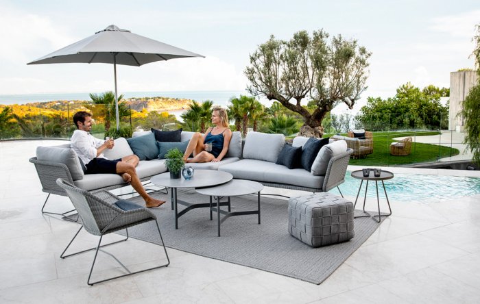 Den nätta stålramen ger loungen ett lätt svävande utseende, som tillsammans med den flätade sitsen skapar en elegant inramning. Sitsarna och dynorna är tillverkade i det mjuka och bekväma Cane-line-tyget Natté, vilket gör Horizon till den perfekta platsen för avkoppling och reflektion.