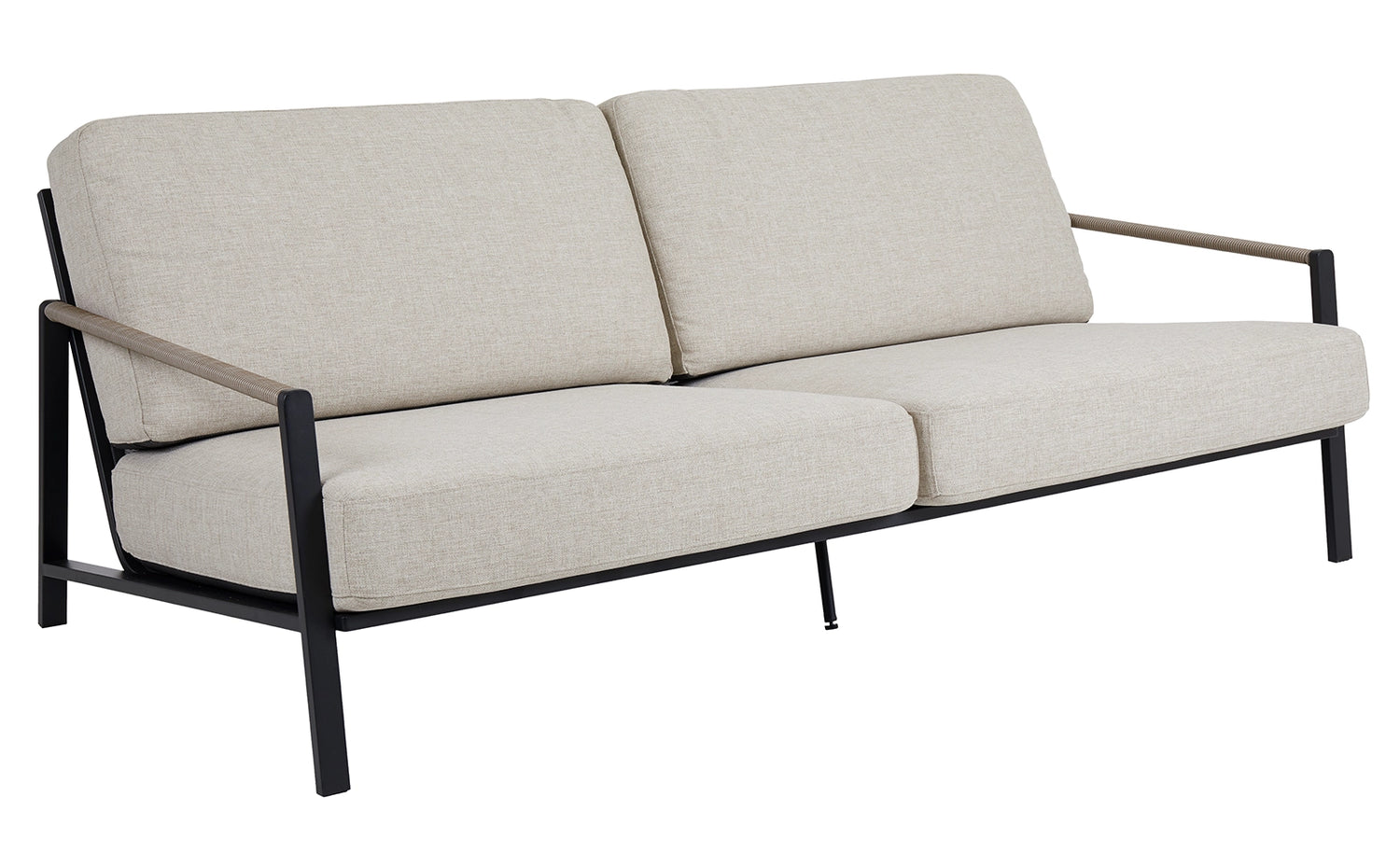 Lyra är en modern och mycket sober loungegrupp i en härlig blandning av material. Gruppen är oerhört bekväm tack vare de tjocka dynorna med högdensitetsskum. De är klädda med fodrat olefintyg som har en vattenavvisande beläggning på insidan. Stommen består av svart pulverlackerat rostfritt stål med vackra detaljer av konstrotting på armstöden. Allt för att stå emot olika väderlekar. Se samtliga produkter i Lyra-kollektionen här!