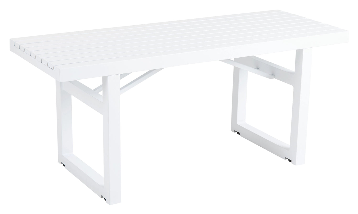 Vevi är en elegant och modern bänk i lackad aluminium från Brafab. Vevi har en snygg design där underredet har en snygg kantig form som tillsammans med de smala rören som inte bara stabiliserar bänk även bidrar till ett unikt utseende. Missa inte det snygga bordet i samma serie. Välj mellan matt vit eller svart finish samt två storlekar.