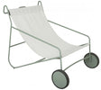 Poul är en unik loungestol med glimten i ögat. Rulla din viloplats dit du vill ha den med hjälp av hjulen och den smarta stången baktill som även dubbeljobbar som krok när du behöver hänga ifrån dig din handduk, skjorta eller solhatt. Behöver du tvätta tygsisten går den enkelt att ta av tack vare en dragkedja.