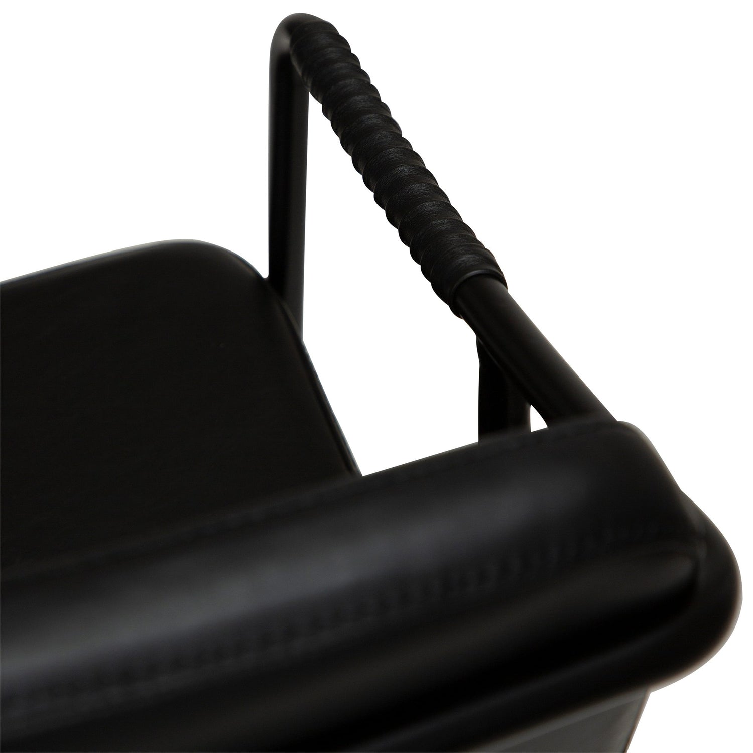 BOTO-bänkstolen är en klassisk design av By Georgsen. De tunna metallbenen som fortsätter in i armstöden omsluter ryggstödet på sitsen. Konstlädret är omsvept runt armstöden som en dekorativ detalj som lyfter designen till nästa nivå. Bänkstolen är en låg barstol, som passar med köksbänkars höjd. BOTO-kollektionen består av stolar, bar- och bänkpallar samt loungestolar.