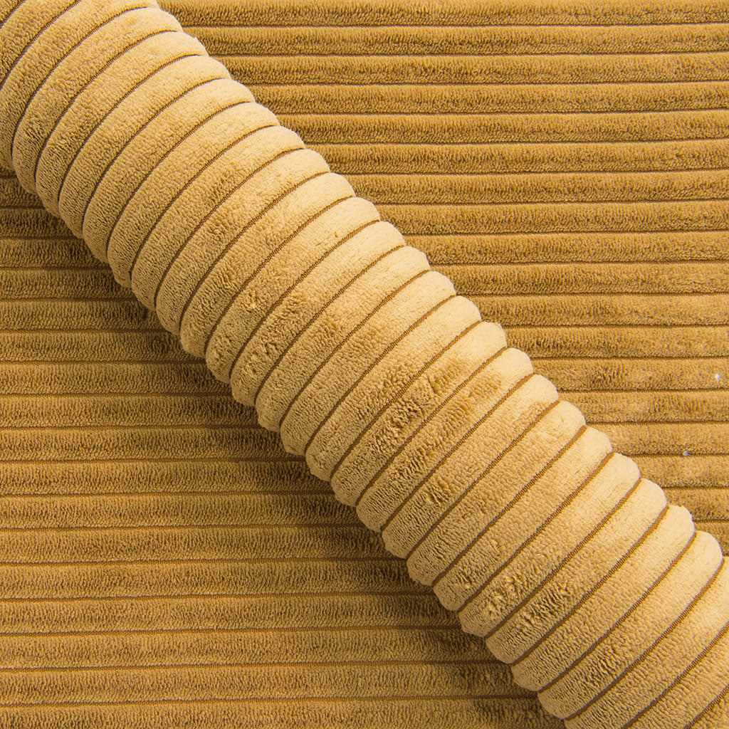 Tor är en modern och rymlig loungesoffa i 3,5 sits som bjuder in till riktig avkoppling. Klädseln är Manchester Mustard, ett mjukt och slitstarkt manchestertyg med fin ribbad struktur och en varm senapsgul ton som ger rummet energi och karaktär. Färgen lyfter fram soffans generösa former och skapar en inbjudande loungekänsla.