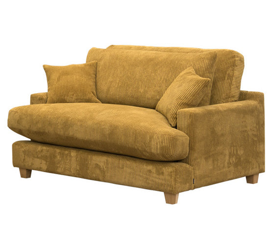 Tor är en rymlig loungefåtölj i 1,5 sits som bjuder in till skön avkoppling. Klädseln är Manchester Mustard, ett mjukt och slitstarkt manchestertyg med fin ribbad struktur och en varm senapsgul ton som ger rummet energi och karaktär. Den generösa sittytan och de stora kuddarna förstärker loungekänslan och gör fåtöljen perfekt för långa stunder av vila.