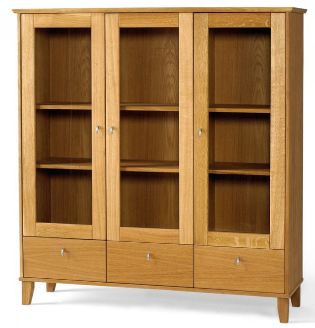 Ekliden är ett stort och massivt vitrinskåp i oljad massiv / fanérad ek. Skåpet har 3 dörrar samt 3 lådor med två hyllplan bakom varje dörr som är justerbara. Ben är 120mm höga från golvet. Handtag/knopp i alminium. Tillverkad av Torkelson. Ekliden är en av Torkelsons äldsta och mest uppskattade serier och innerhåller massor medfina möbler för dig som älskar ek.