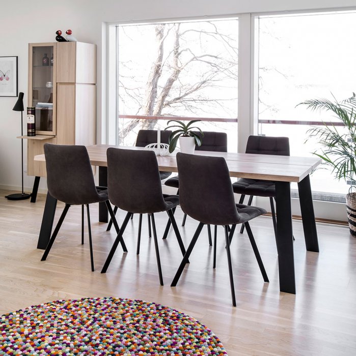 Fleet är ett modernt matbord med en från Torkelson med en snygg design. Toppskivan till Fleet är tillverkad i massiv vitoljad ek. Underrede kommer i svartlackad metall. Du kan köpa till en upp till 2st insticksklaffar som bygger 50cm/skiva. Fleet kommer i två olika storlekar.