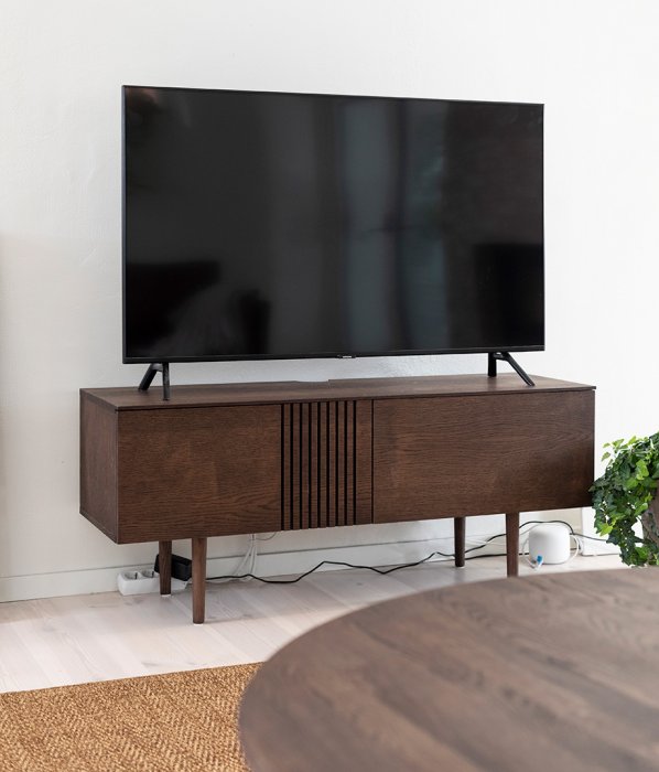 Joel är en modern serie med mediabänkar från Torkelson. Stommen är tillverka i mdf med en elegant ekfanér på. Välj sedan rökbestad, vitoljad eller svartbetsad finish så den passar ditt vardagsrum. Joel har tre sektioner med push-open funktion där den längst till vänster har en ribbad del som både ger mediabänken sin unika design samt ventilerar eventuell värme. Mediabänken är 50 cm hög med ben.