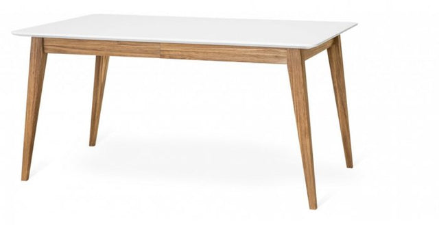 Mood är ett stilrent matbord med butterfly-ilägg, vilket innebär att iläggsskivan förvaras smidigt i bordet och fälls upp vid behov. Bordet förlängs då från 150 till 200cm. Underrede är i massiv oljad ek med en bordsskiva i vitlackad mdf. Det finns en större variant av Mood bordet i serien.