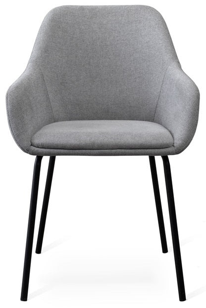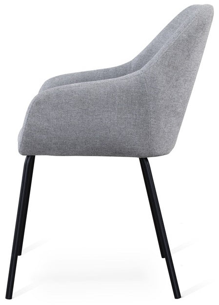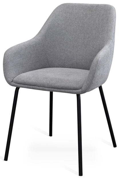 Navo är en modern och elegant stol från Torkelson. Tack vare de små armstöden får du en mycket bra sittkomfort trots den nätta designen. Sitsen och ryggen är klädd i ett slitstarkt och praktiskt tyg som du kan välja mellan olika färger på. Smala och runda svartlackade metallben.