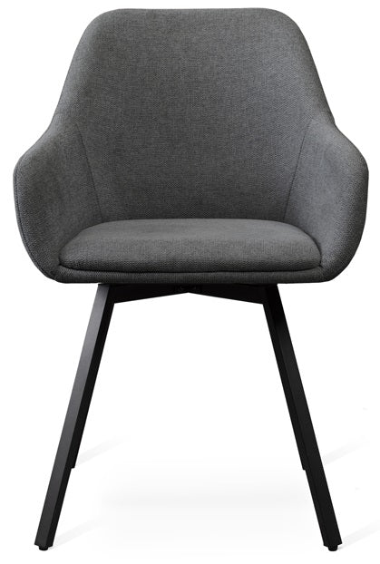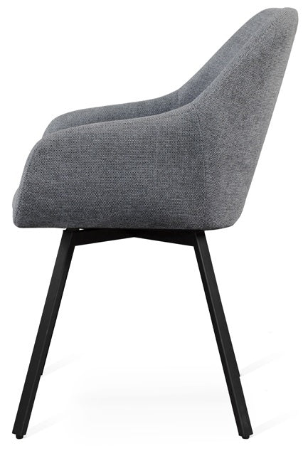 Navo är en modern och elegant stol med snurrfunktion från Torkelson. Tack vare de små armstöden får du en mycket bra sittkomfort trots den nätta designen. Sitsen och ryggen är klädd i ett slitstarkt och praktiskt tyg som du kan välja mellan olika färger på. Svartlackade metallben.