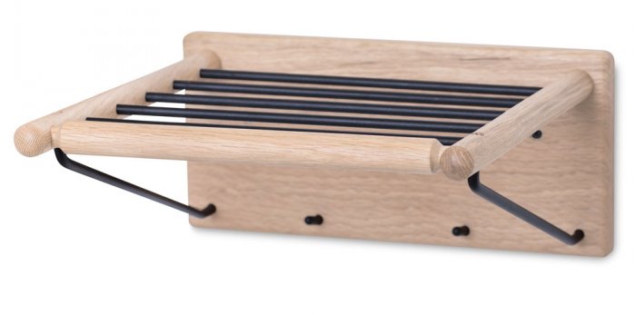 Twist är en modern och elegant serie från Torkelson. Twist har en tydlig skandinavisk design som ger ett nätt och snyggt intryck. Twist är en hallserie som innehåller det mesta för att skapa en elegant och modern hall. Hatthyllan är tillverkad av vitoljad ek med hyllplan av metallstänger. Välj mellan tre olika färger.
