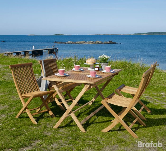 Turin är ett prisvärt smidigt fällbord från Brafab i massiv teak. Det går enkelt att fälla ihop för praktisk förvaring när möblerna ska skyddas från tråkigare väder. Snabbt att ta fram när man får oväntat besök till midsommar. Bordsskivan har snygga teak ribbor och eleganta beslag i mässing, en klassisk och traditionell design. Turin är kanske marknadens mest prisvärda möbelserie i teak som passar lika bra i sommarstugan i falurött och vita knutar som på balkongen i stan. Den är lättplacerad, smidig och elegant. Klassiker hos Brafab. Se samtliga produkter i Turin-kollektionen här!