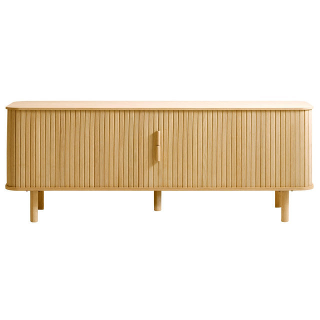 Eleganza förenar varm träkänsla med ren skandinavisk design. Den mjukt rundade profilen och den räfflade fronten ger ett elegant, tidlöst uttryck som lyfter rummet. På 160 cm får du generöst med dold förvaring för teknik och tillbehör – i en stabil möbel på diskreta träben som känns både modern och lättplacerad. Yta i naturlig ekfaner med vacker ådring som ger ett harmoniskt helhetsintryck.