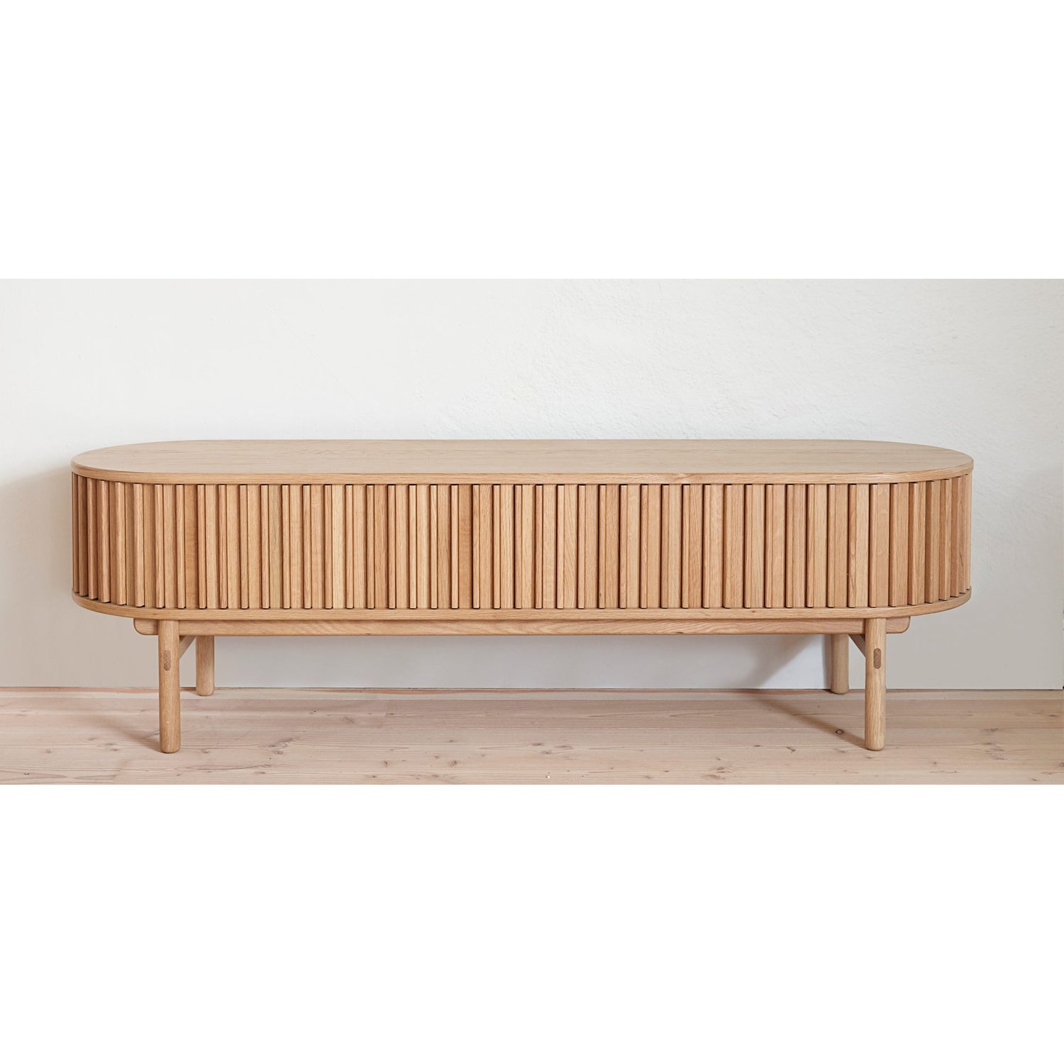 Garbo är mediabänken som ger vardagsrummet en varm, skandinavisk känsla. Den mjukt ovala formen och den eleganta ribbfronten skapar liv och struktur, medan de runda träbenen håller uttrycket lätt och luftigt. En öppen hylla i mitten ger snabb åtkomst till TV-box eller spelkonsol, och den dolda förvaringen håller sladdar och tillbehör prydligt ur synfältet. En tidlös mittpunkt som kombinerar form och funktion, varje dag.