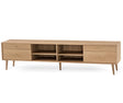 Scandi mediabänk B 206 D 39 H 50 i fanerad oljad ek. Fyra självstängande lådor och två öppna fack.