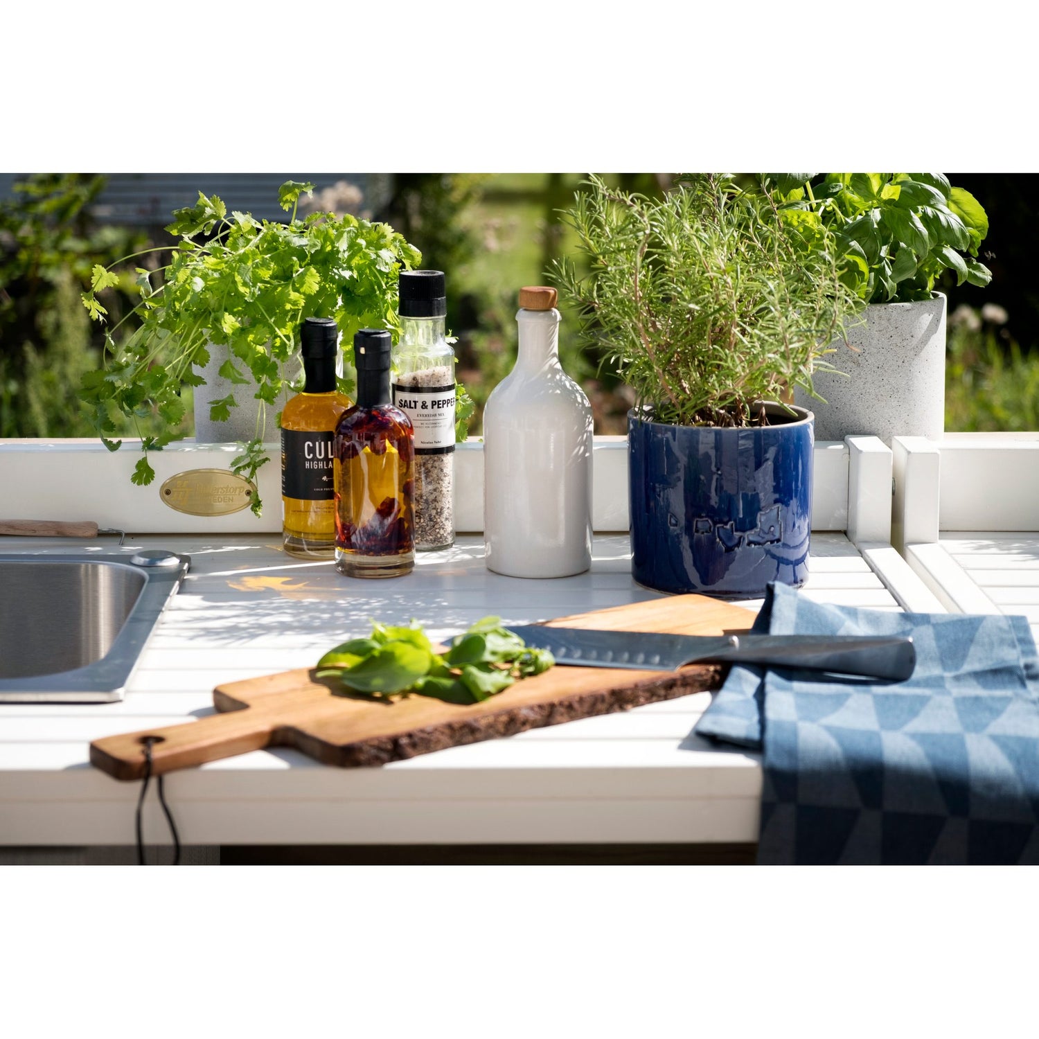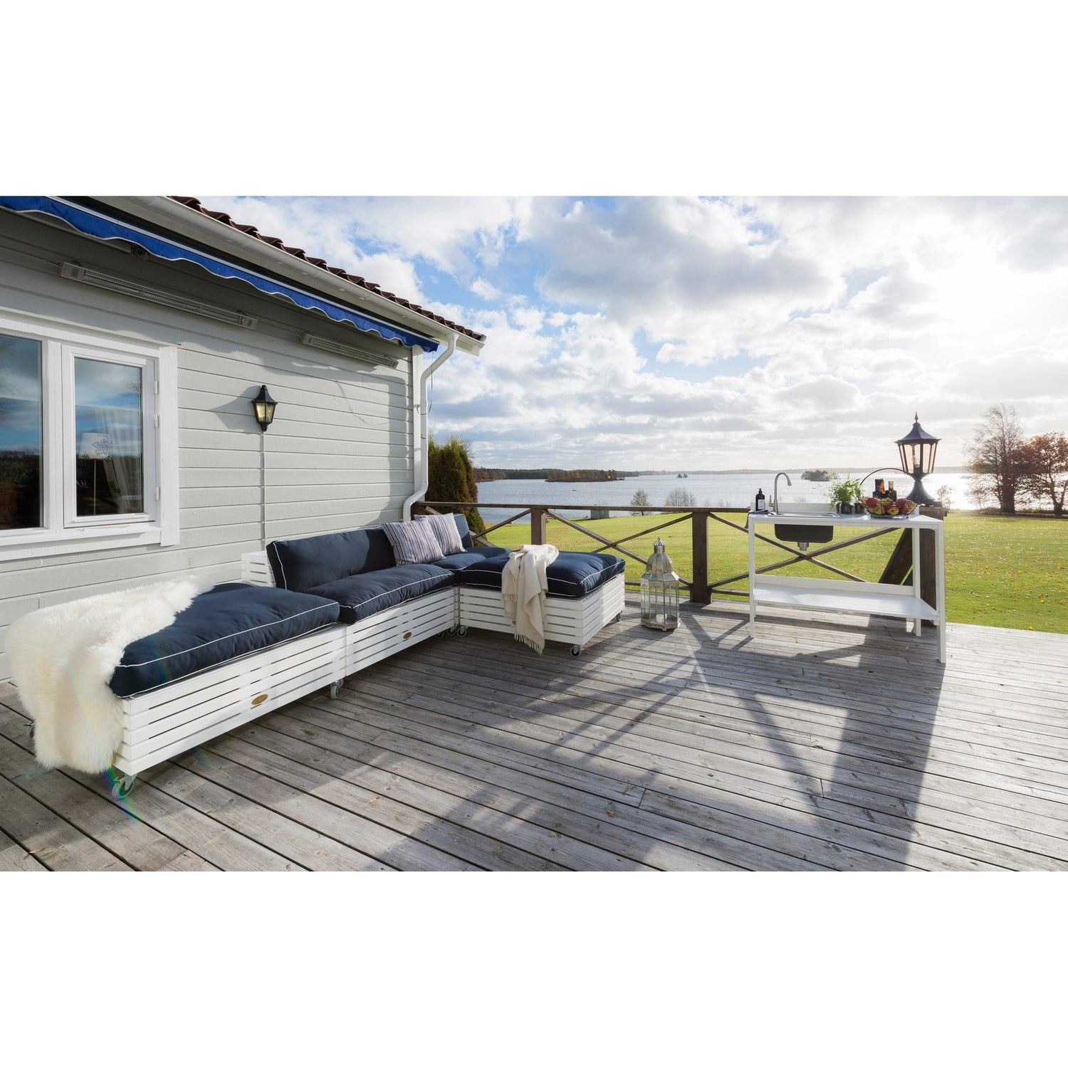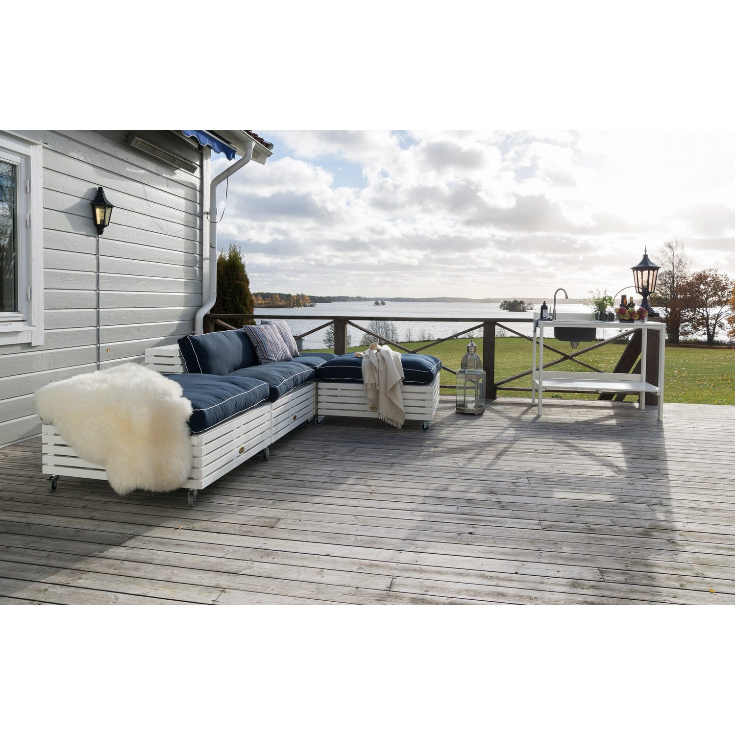 Läckö utekök ger uteplatsen en ny samlingspunkt och är en garanterad succé till sommarens festligheter. Uteköket är tillverkad i vitlaserad kärnfuru från svenska skogar och passar perfekt till resterande i serien Läckö från Hillerstorp. Det går att köpa till en bänkskiva i zink för att göra toppen mer praktisk.