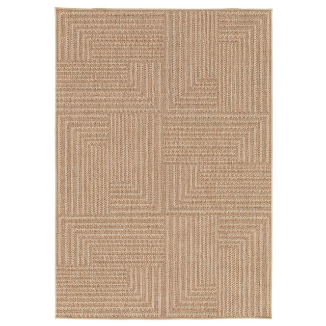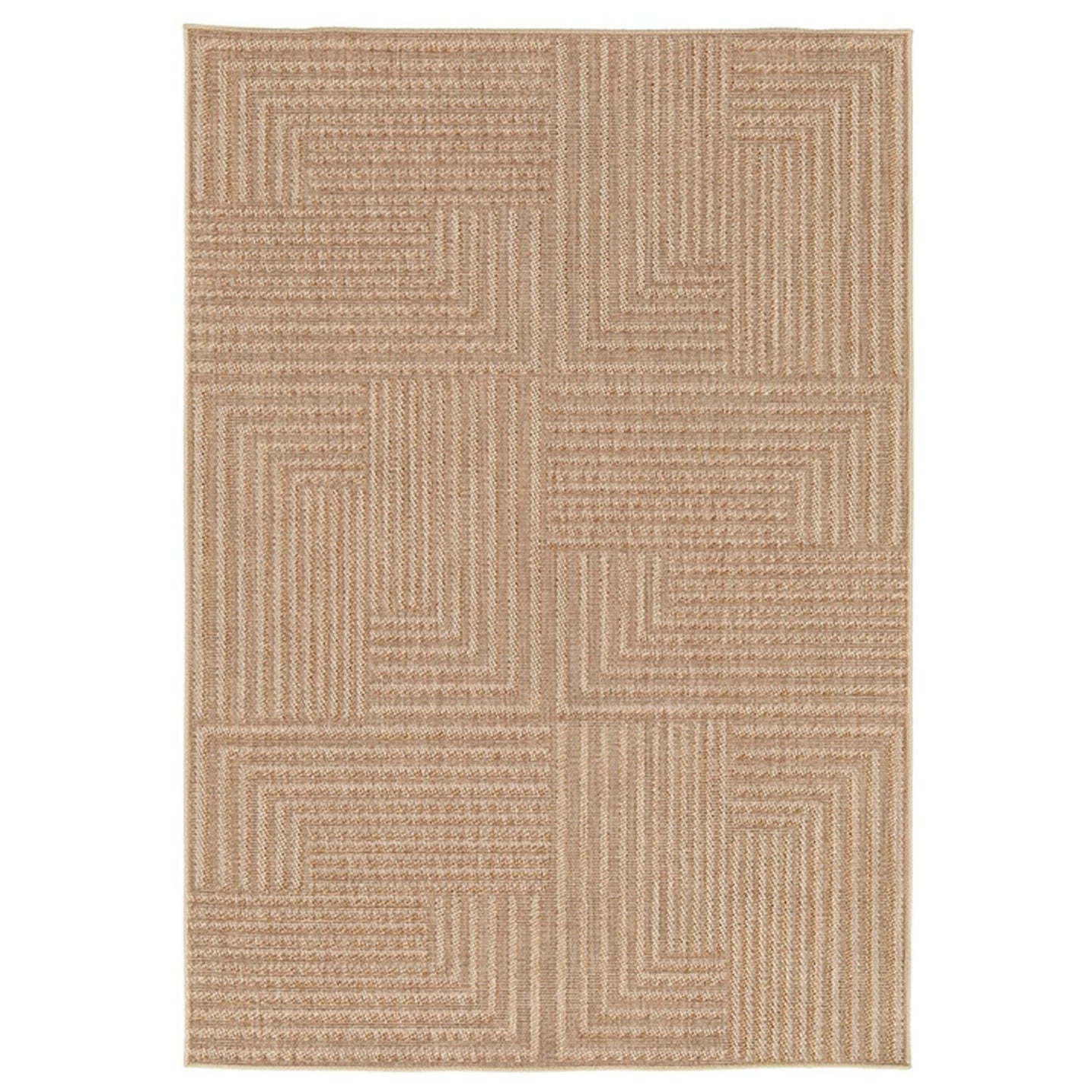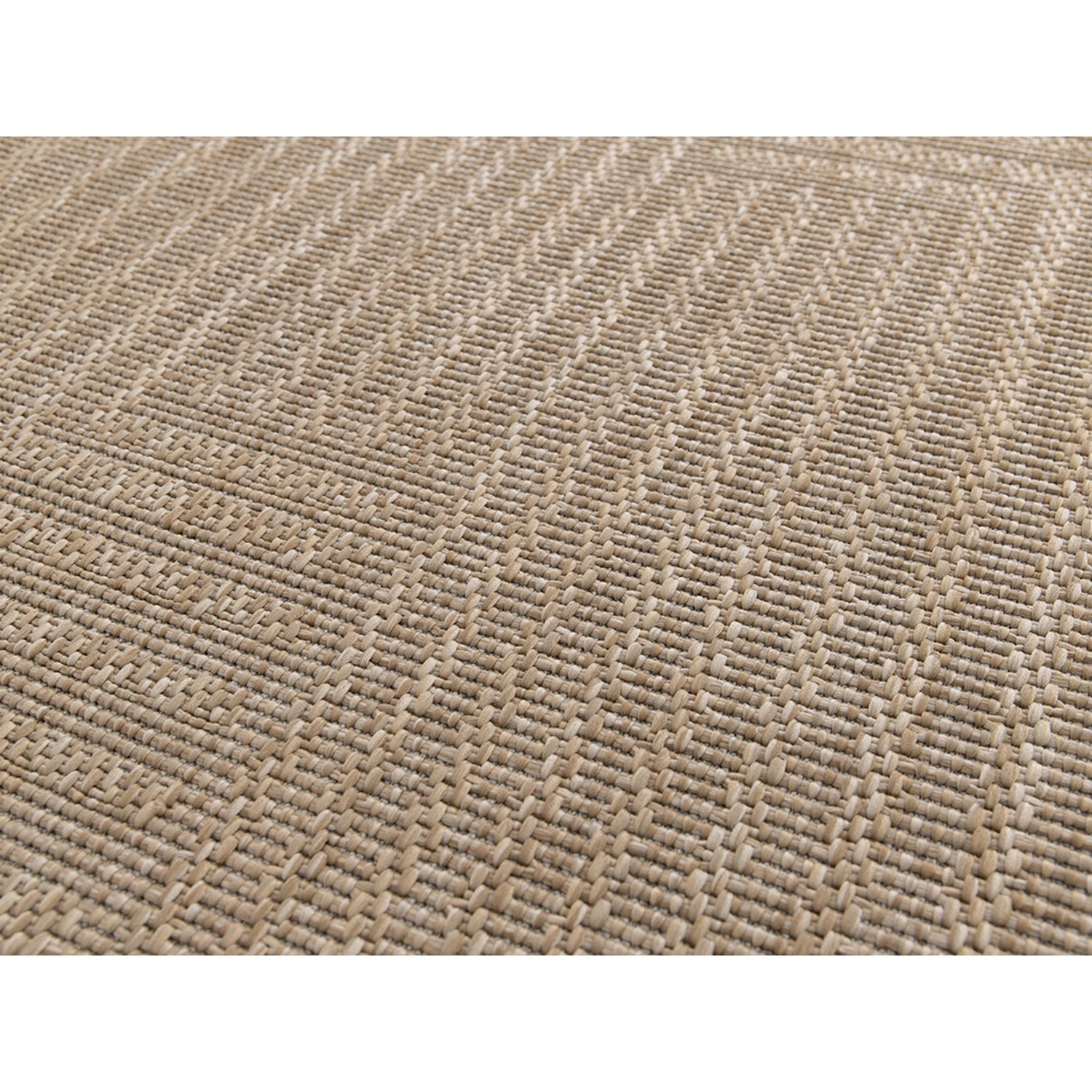 Den kraftiga flatväven i naturliga färger ger känslan av en tidlös sisallook. Tankarna går till utemiljöer eller uterum men mattan är lika fin inomhus, placerad där det krävs något extra tåligt. Mattan har tydliga strukturer och mönstret är klassiskt modernt i en sparsmakad geometrisk design. Känslan av struktur förhöjs ytterligare genom samspelet mellan garner av olika nyanser ton-i-ton. Tillverkad av 100% extra hållbart polypropylengarn. Garnet är UV-beständigt, tål vatten, fäller inte, och är fläckavvisande. Mattan kan därför utan problem placeras utomhus, i uterum eller inomhus. Kanterna är avslutade med tålig langett i matchande färg. Mattan är lätt att göra ren - dammsug eller spola av med ljummet vatten och låt torka. Fläckar avlägsnas med en svamp, lite ljummet vatten och diskmedel.