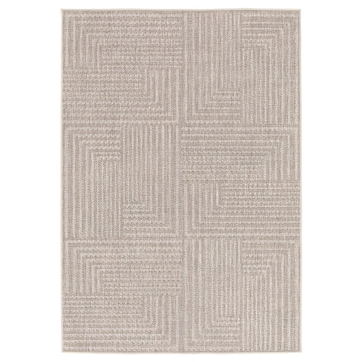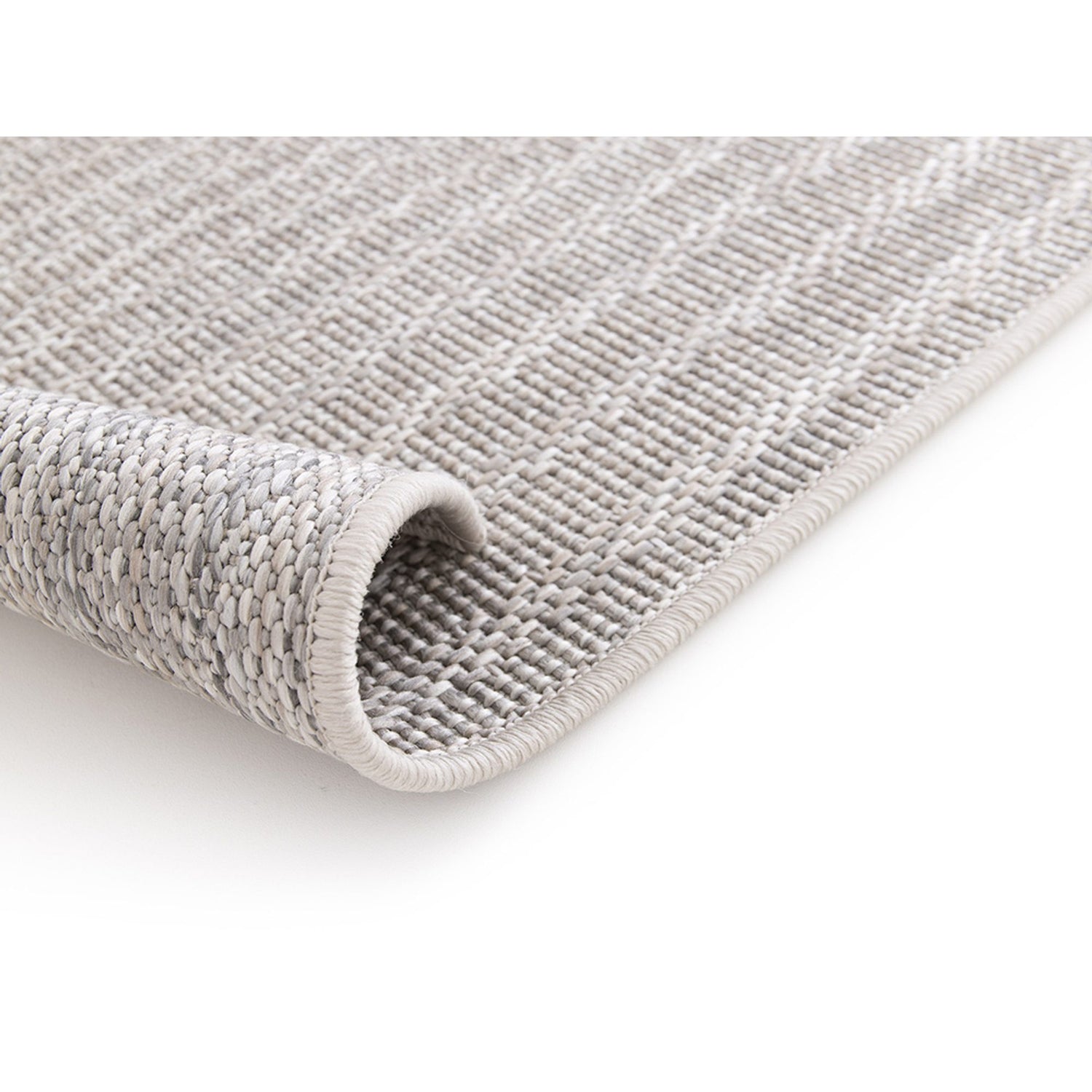 Den kraftiga flatväven i naturliga färger ger känslan av en tidlös sisallook. Tankarna går till utemiljöer eller uterum men mattan är lika fin inomhus, placerad där det krävs något extra tåligt. Mattan har tydliga strukturer och mönstret är klassiskt modernt i en sparsmakad geometrisk design. Känslan av struktur förhöjs ytterligare genom samspelet mellan garner av olika nyanser ton-i-ton. Tillverkad av 100% extra hållbart polypropylengarn. Garnet är UV-beständigt, tål vatten, fäller inte, och är fläckavvisande. Mattan kan därför utan problem placeras utomhus, i uterum eller inomhus. Kanterna är avslutade med tålig langett i matchande färg. Mattan är lätt att göra ren - dammsug eller spola av med ljummet vatten och låt torka. Fläckar avlägsnas med en svamp, lite ljummet vatten och diskmedel.