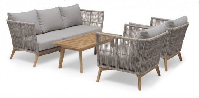 I denna grupp ingår: 3-sits soffa och två fåtöljer i Himmelsnäs serien med ett soffbord i teak.