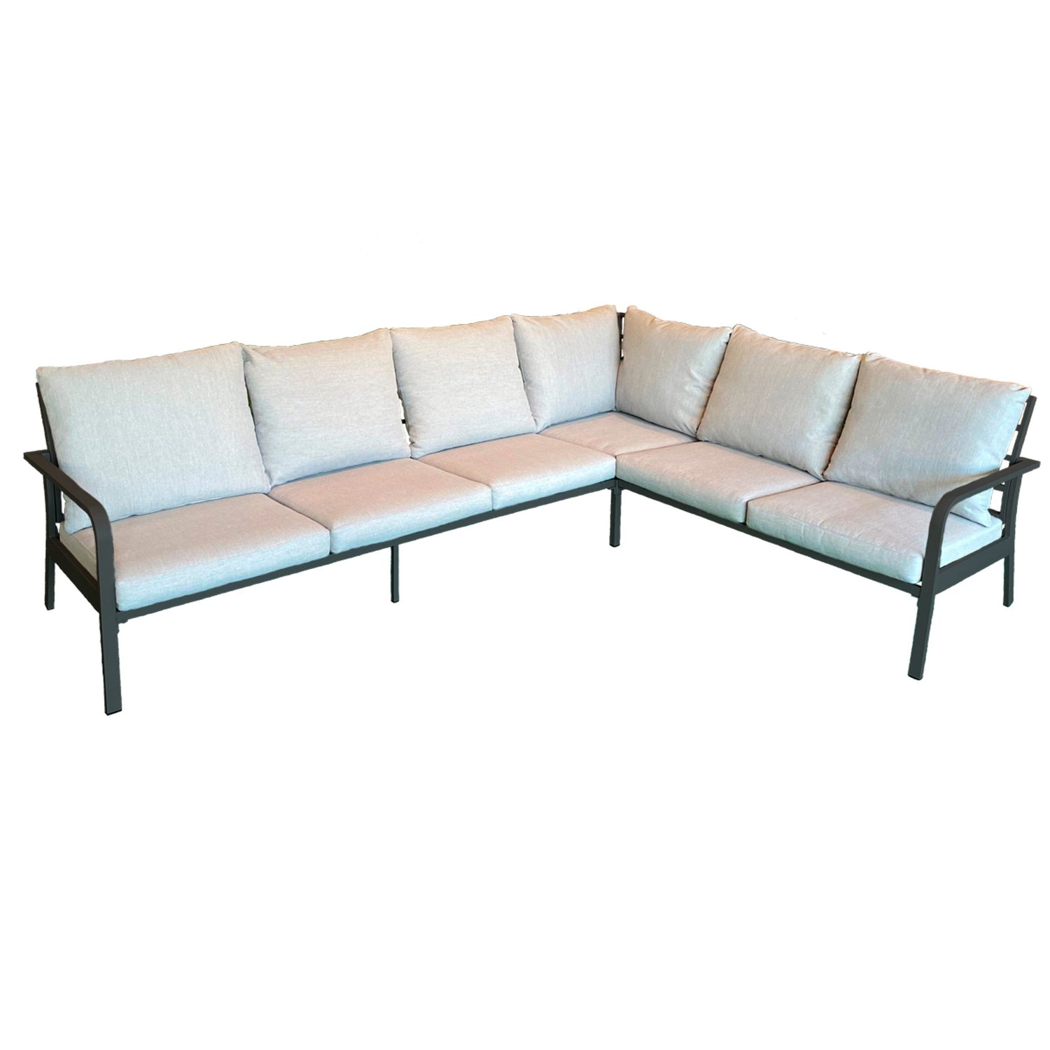 Tillverkad i hållbar aluminium och klädd med gråbeiga dynor i olefin, är denna soffan både elegant och funktionell. Dynornas avtagbara klädsel kan enkelt tvättas för att hålla soffan fräsch, och den enkla handtvätten på 30 grader gör det lätt att ta hand om. Kombinera gärna soffan med ett matchande bord, som köps separat, för att skapa den perfekta uteplatsen.